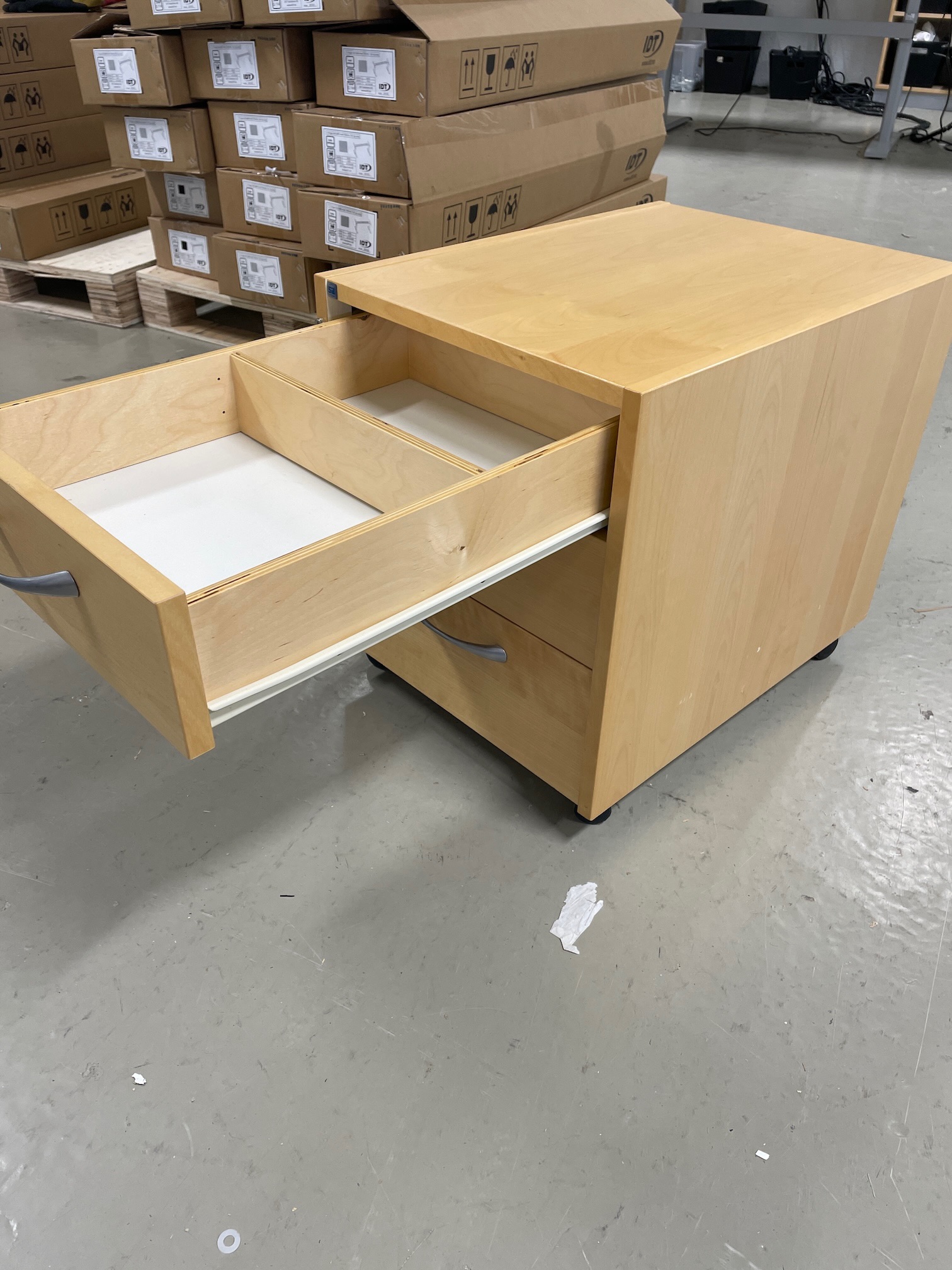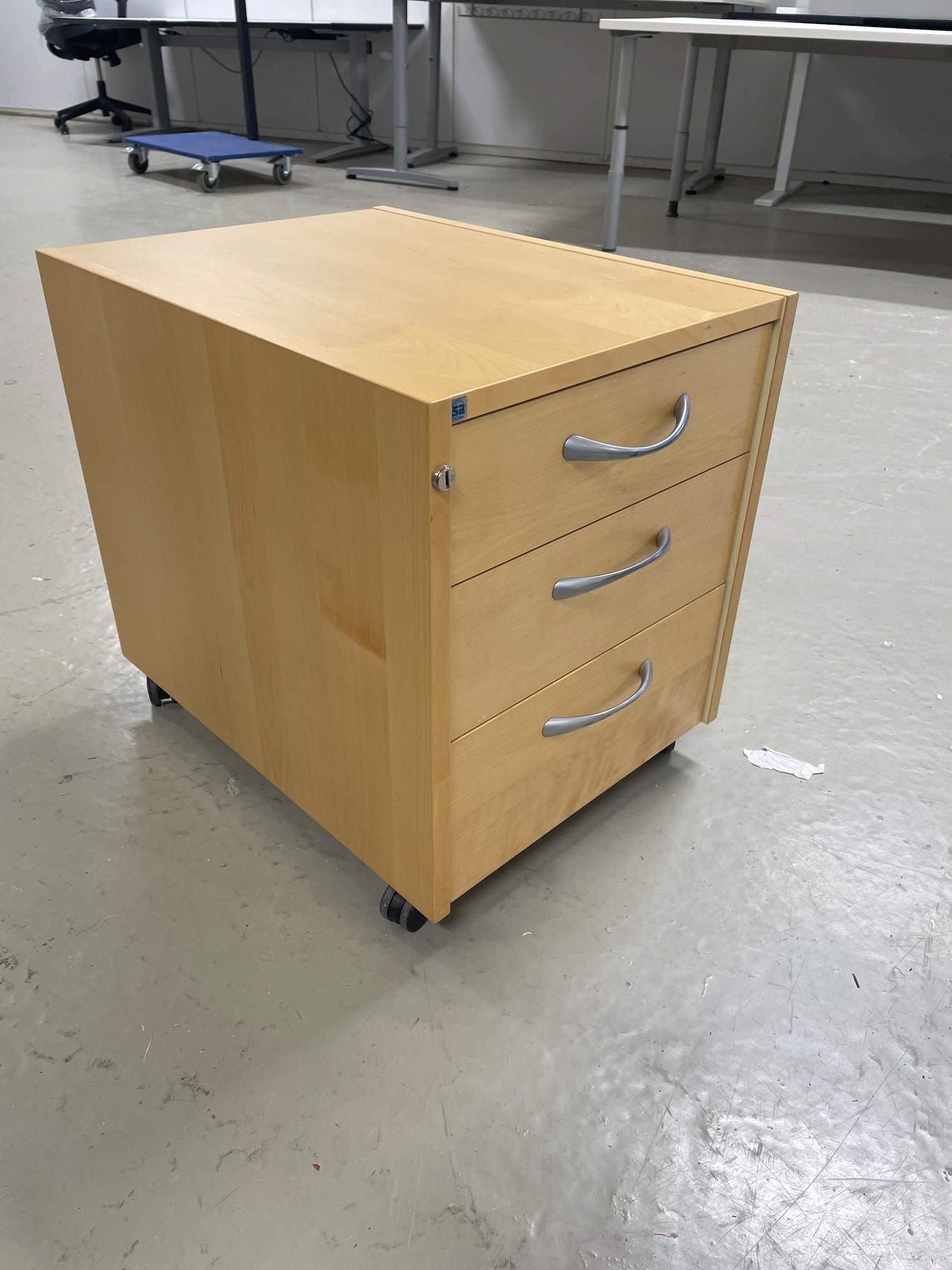 Brukt skuffeseksjon fra SA Møbler, i bjørk med sølv håndtak.