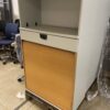 Kinnarps sjalusiskap i grått med eik sjalusi, og med skuff og reol.