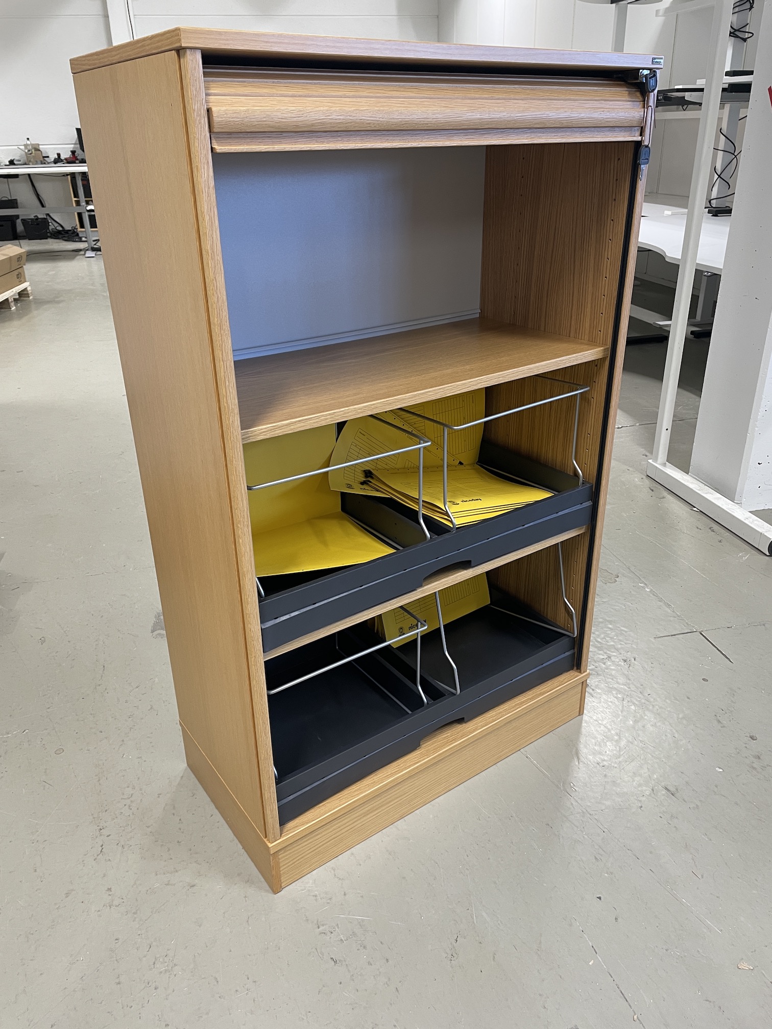 Pent brukt skap med sjalusi i eik, fra Kinnarps.
